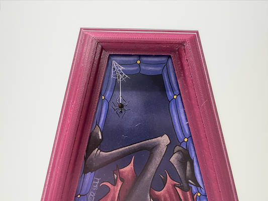 Illustrated Spider in a custom designed, GLOW IN THE DARK, 3D printed frame.