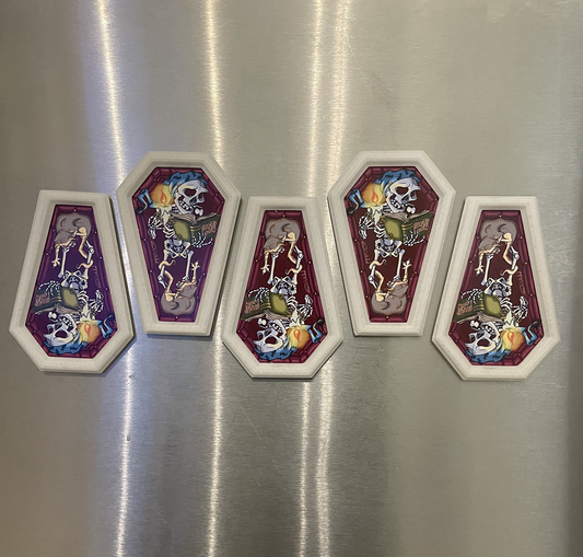 Illustrated Skeleton Magnet in custom designed, GLOW IN THE DARK, 3D printed frame.